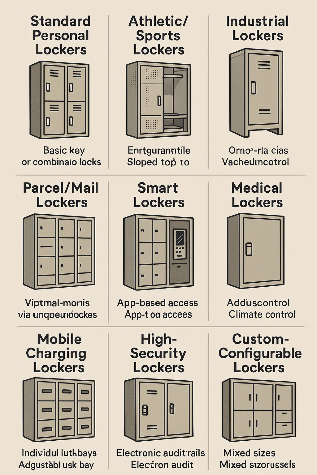 Lockers are categorized based on design, function, and deployment context. Below is a breakdown of common types: