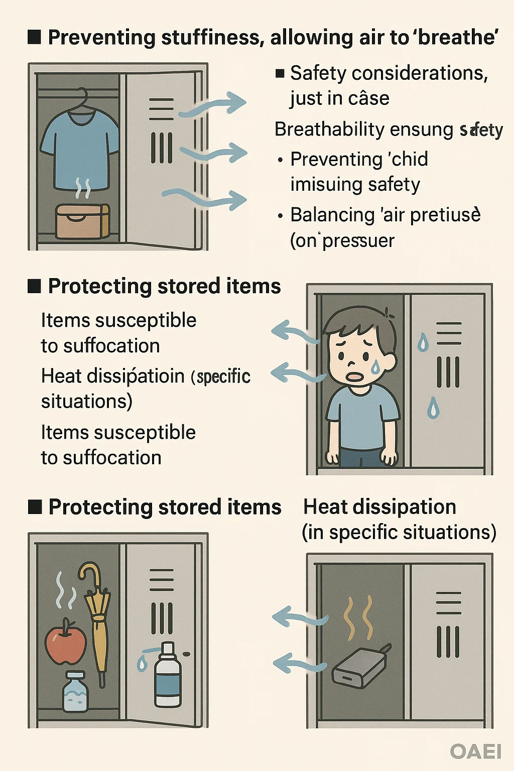 Breathability ensures safety (one of the most important reasons): This is crucial! In case a child misbehaves or accidentally locks themselves inside the locker (though rare, this is a design consideration), these small holes ensure airflow and prevent suffocation. A completely sealed space without holes is extremely dangerous.